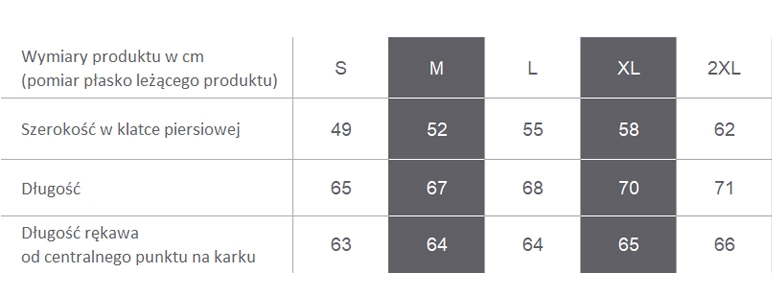 Podajemy uśrednioną wagę produktu, zwykle dla rozmiaru L. Waga innych rozmiarów, szczególnie rozmiarów dużych może znacznie odbiegać od podanej wartości. kurtki: ok. 570 g