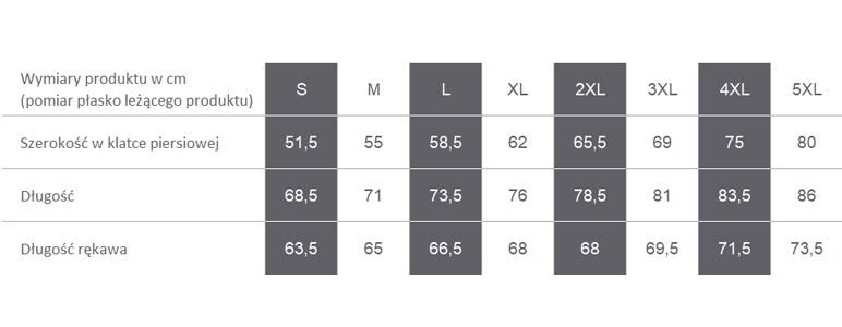 Podajemy uśrednioną wagę produktu, zwykle dla rozmiaru L. Waga innych rozmiarów, szczególnie rozmiarów dużych może znacznie odbiegać od podanej wartości.